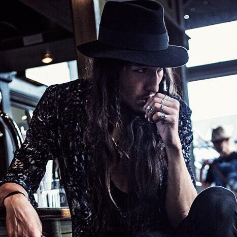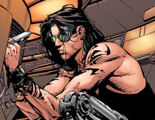 Unusual Features Cybernetic right hand and forearm, cybernetic left leg, tribal tattoos on his shoulders, collar, upper arms and left arm down to the wrist